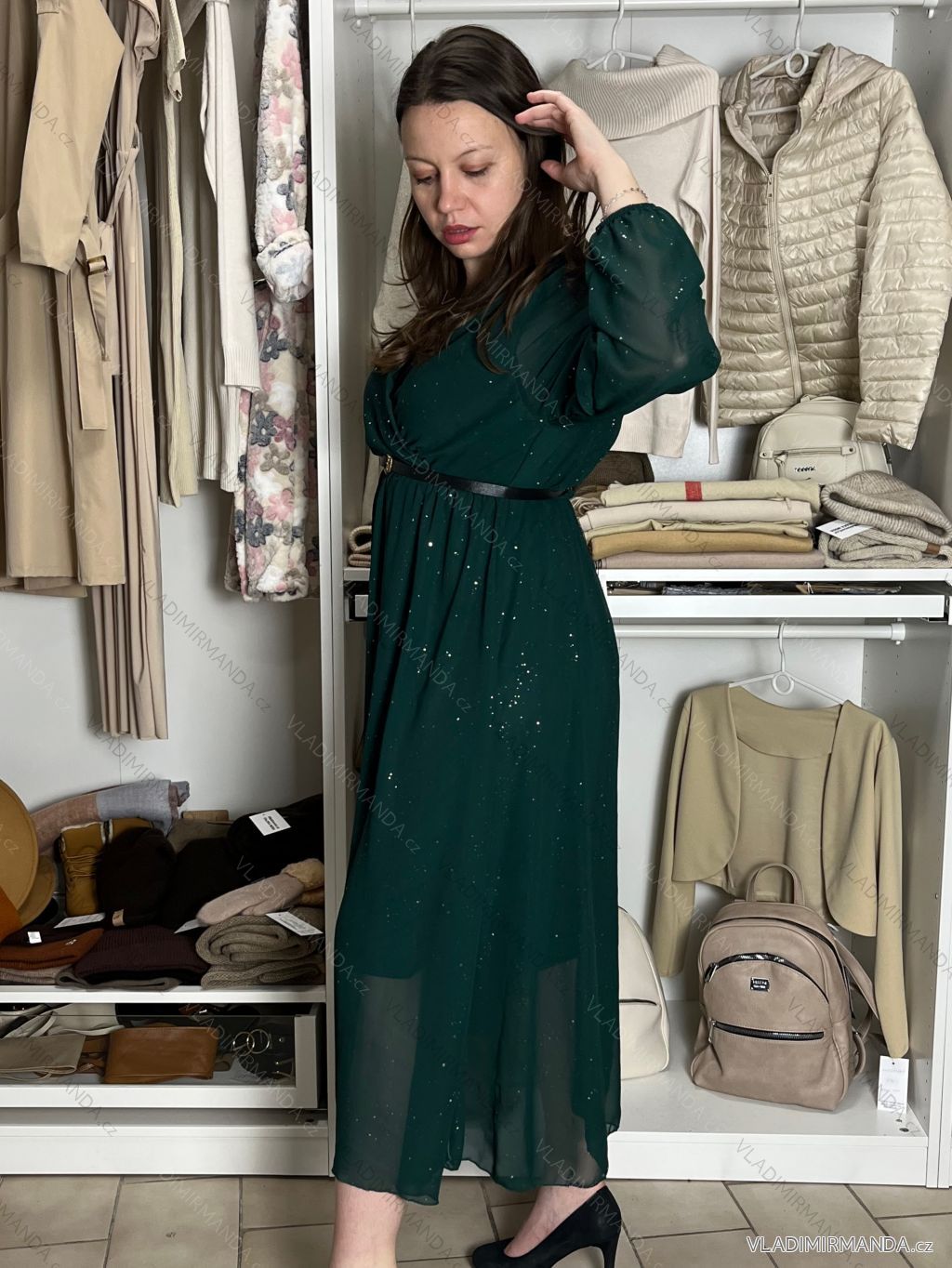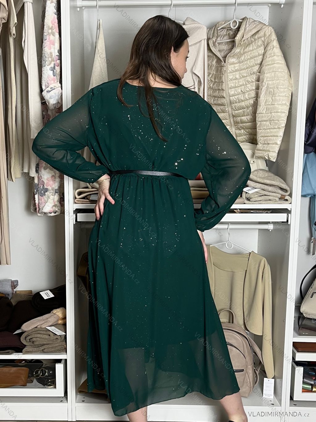 TOVAR (119519) > oblečenie dámske (80858) > šaty (30318) > Šaty elegantní s páskem dlouhý rukáv dámsky SAFIR (M/L/XL ONE SIZE) talianska móda IMWMY251114/DU M/L/XL zelená smaragdová