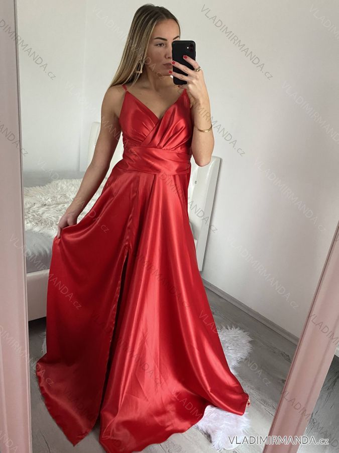 Dlouhé plesové šaty s nastavitelnými ramínky. Šaty mají prsní vycpávky a vzadu žabičkování, díky kterému jsou pružné přes prsa
