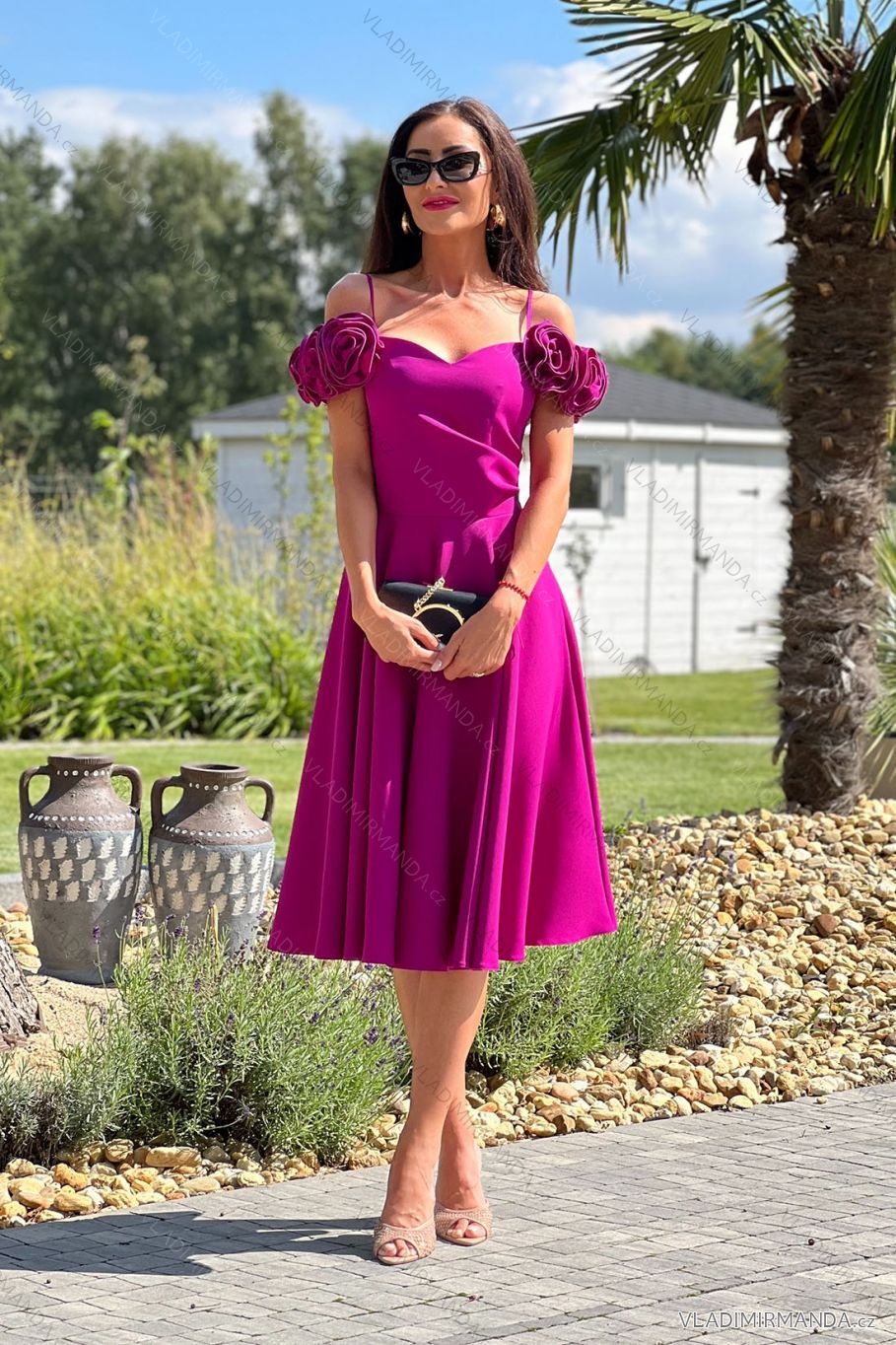 Šaty elegantní společenské na ramínka dámské (34-42) POLSKÁ MÓDA PMLEL24FLOWER2 fialová 38