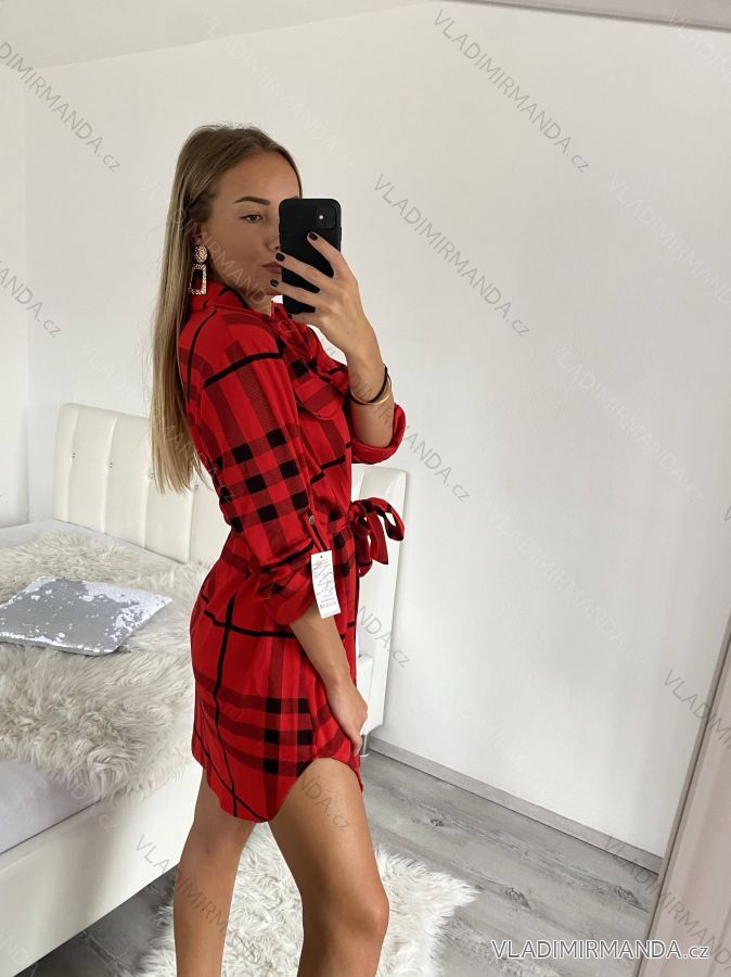 Šaty košeľové dlhý rukáv dámske (S/M/L ONE SIZE) TALIANSKA MÓDA IMBM22WEST