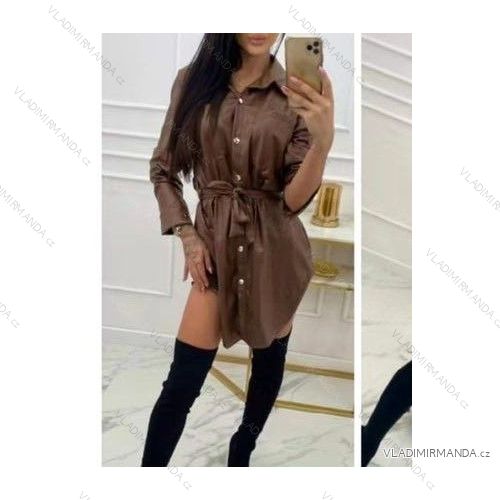 Šaty košeľové koženkové dlhý rukáv dámske (S/M ONE SIZE) TALIANSKA MÓDA IMWC223332