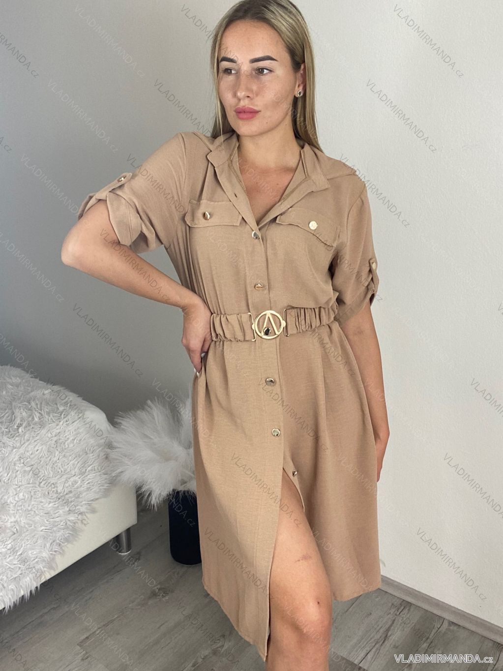 TOVAR (120702) > oblečenie dámske (81785) > šaty (30715) > šaty košeľové (2069) > Šaty košeľové dlhý rukáv (1321) > Šaty košeľové s opaskom 3/4 dlhý rukáv dámske MILANO(XS/S/M ONE SIZE) TALIANSKA MÓDA IMD25102/DUR S / M béžová