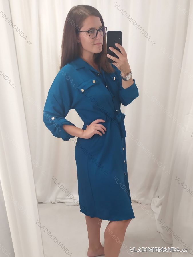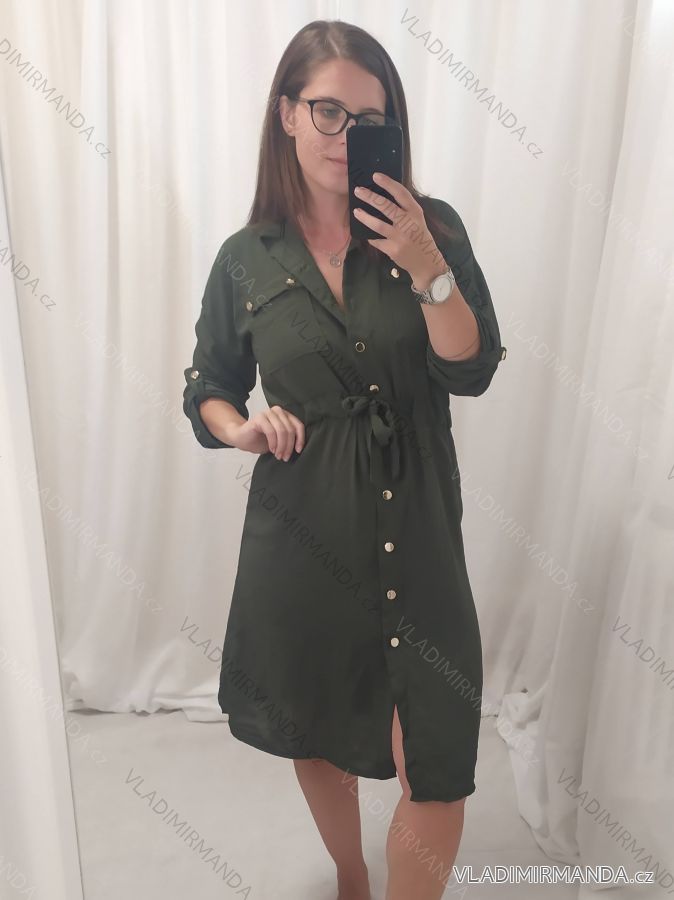 Šaty košilové dlouhý rukáv dámské (M/L/XL ONE SIZE) ITALSKÁ MÓDA IMWG22496
