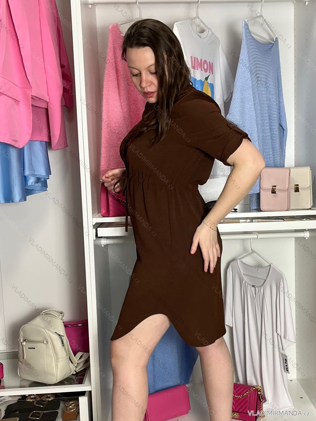 Šaty košilové stahovací 3/4 dlouhý rukáv dámské (S/M/L ONE SIZE) ITALSKÁ MÓDA IMSM26072