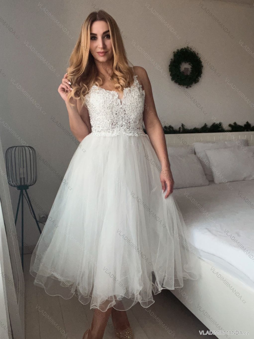 Šaty krátké společenské na ramínka dámské (S/M ONE SIZE) ITALSKÁ MÓDA IMM23M60052/DUR - bílá - S/M