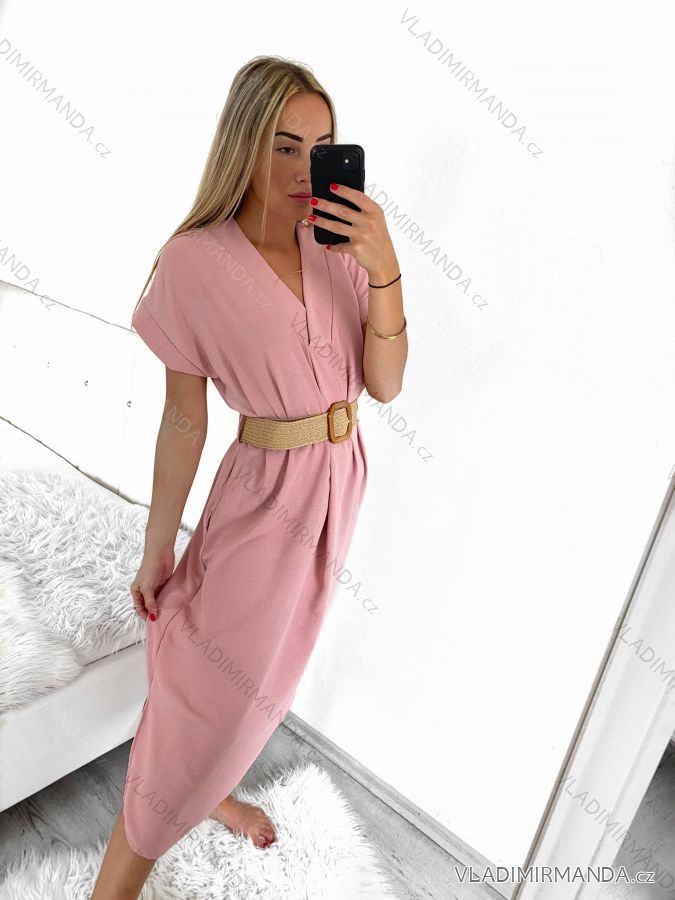 Šaty krátky rukáv s opaskom dámske nadrozmer (M/L/XL ONE SIZE) TALIANSKA MóDA IM423BELT/DUR L/XL biela