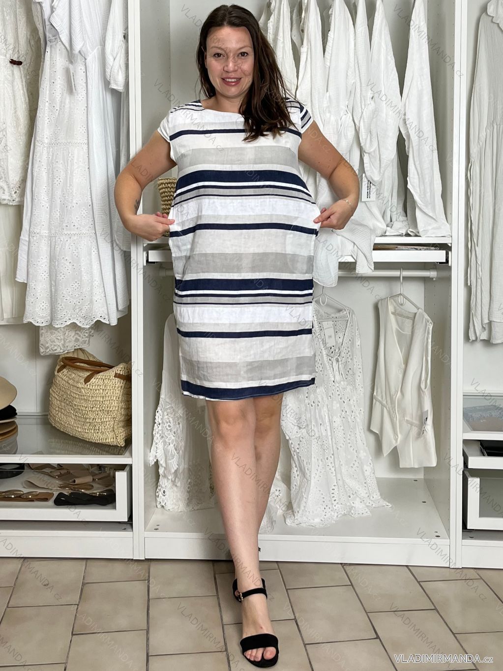 Šaty letné ľanové krátky rukáv dámska KRISTA (S/M/L ONE SIZE) TALIANSKA MÓDA IM4251116/DU S/M/L biela