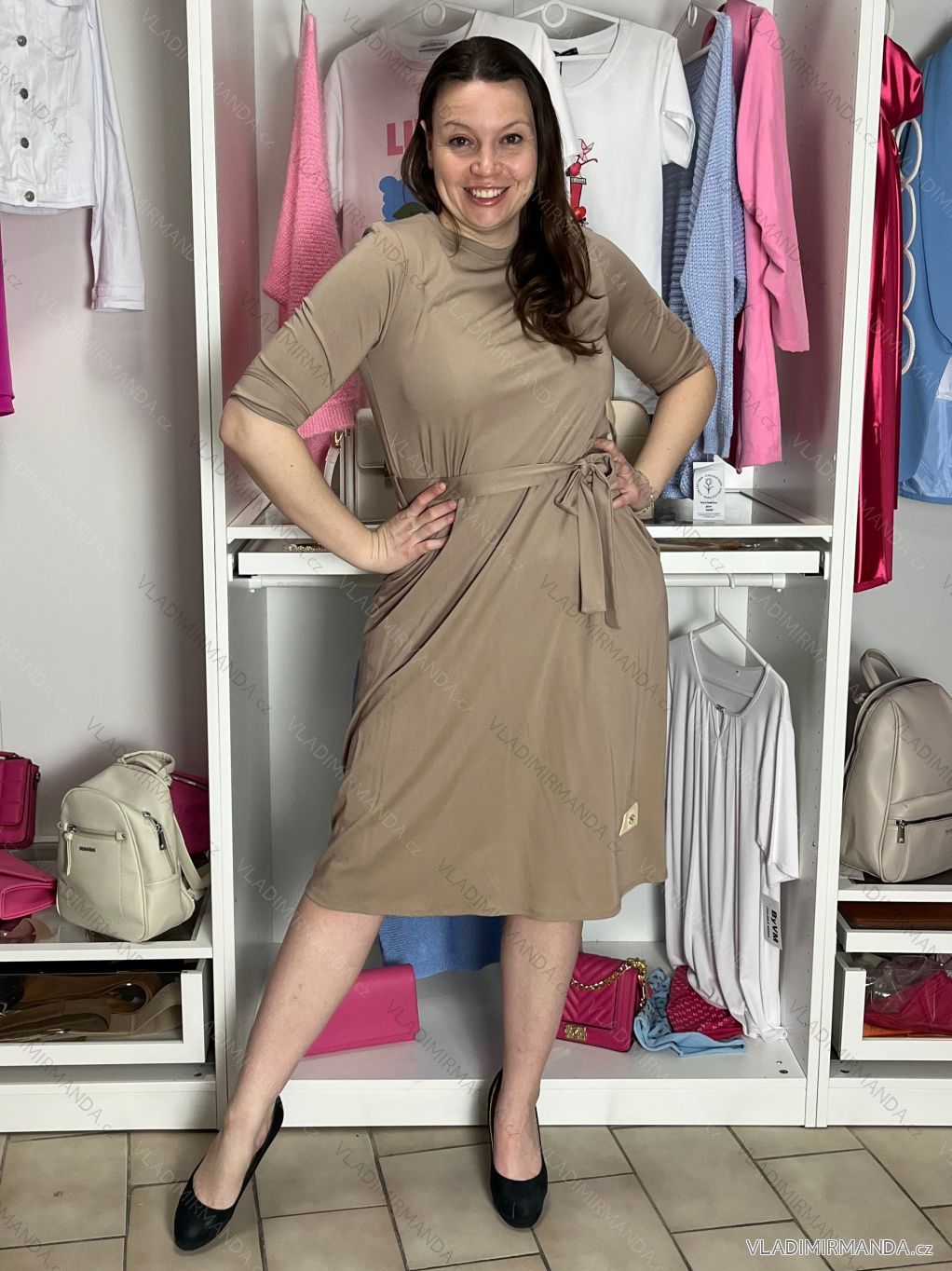 ZBOŽÍ (120811) > Oblečení dámské (81893) > Šaty (30754) > Šaty letní volnočasové (16918) > Šaty volnočasové krátký rukáv (10652) > Šaty letní 3/4 dlouhý rukáv dámské (S/M/L ONE SIZE) ITALSKÁ MÓDA IMD26018/DUR S/M/L béžová