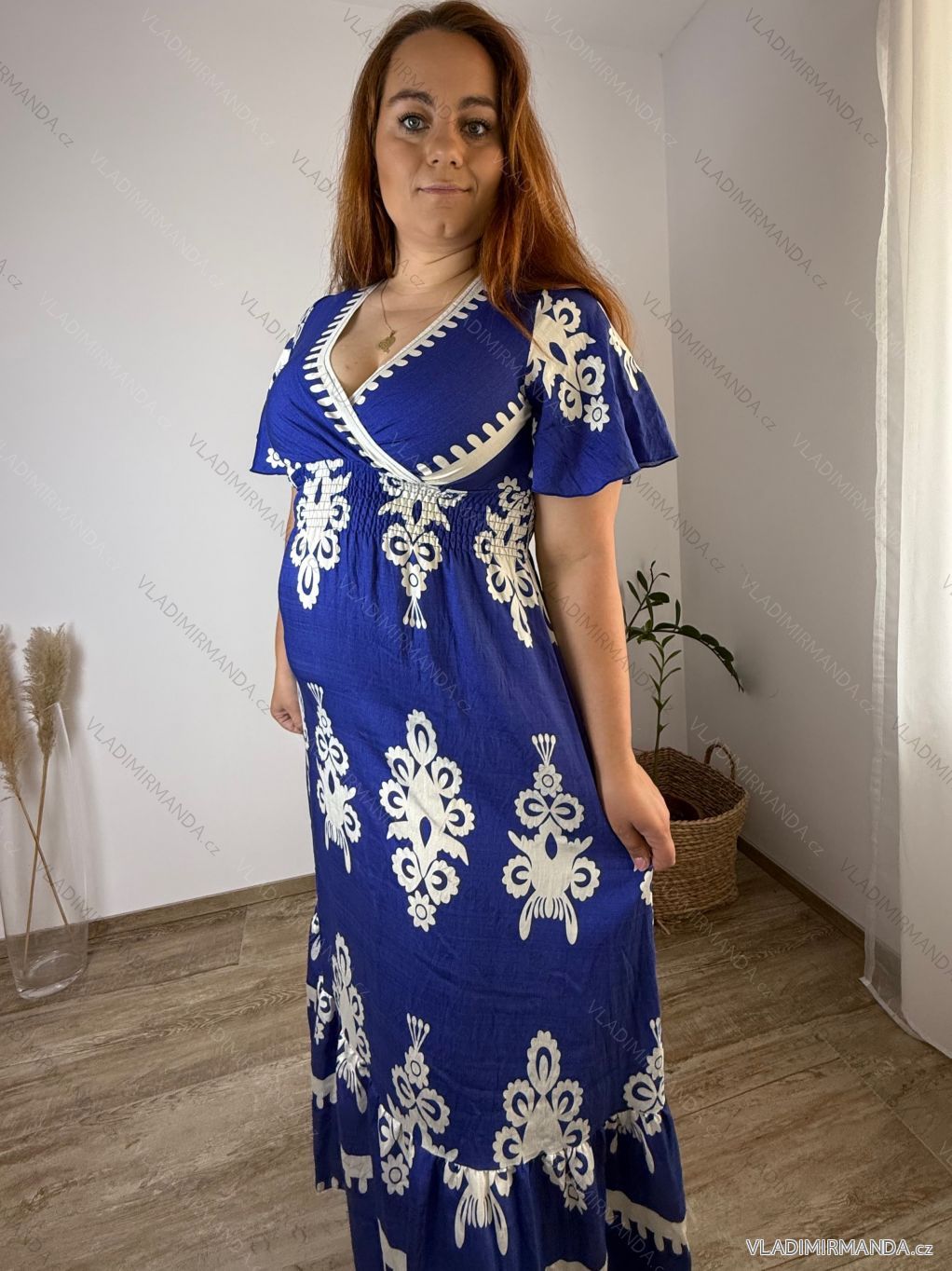 Letní dlouhé šaty s krátkým rukávem