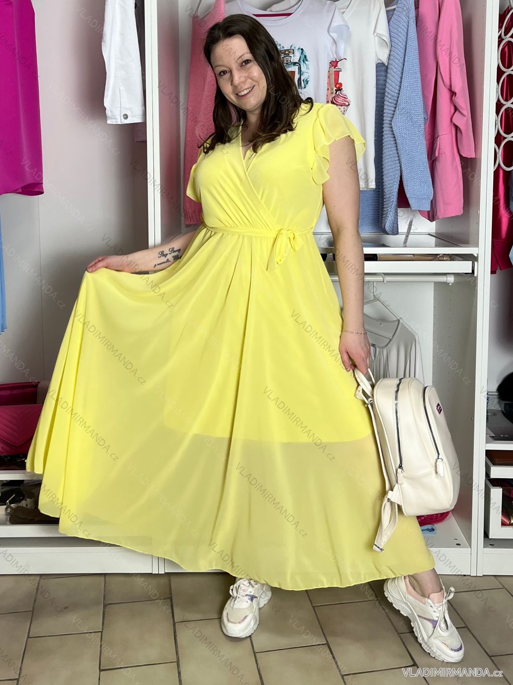 Dlouhé letní šifonové šaty s krátkým rukávem
