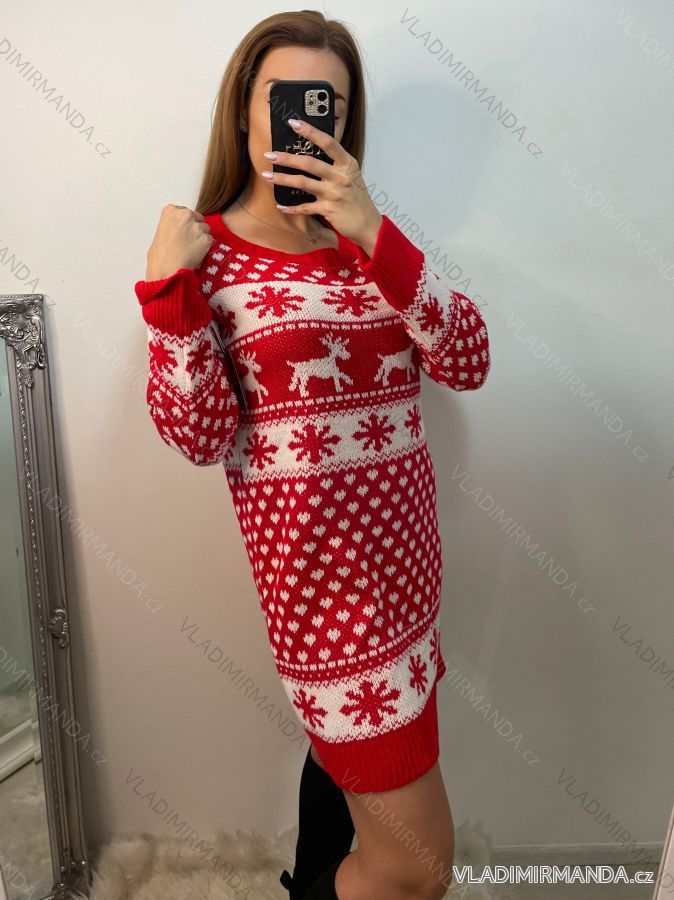 ZBOŽÍ (125159) > Oblečení dámské (81819) > Šaty (30897) > Šaty pletené dlouhý rukáv dámské vánoční (S/M ONE SIZE) ITALSKÁ MÓDA IMPBB22X20286/DU S/M červená