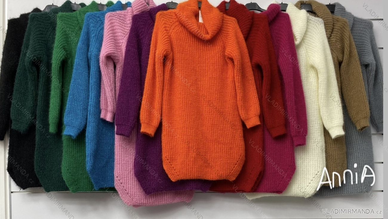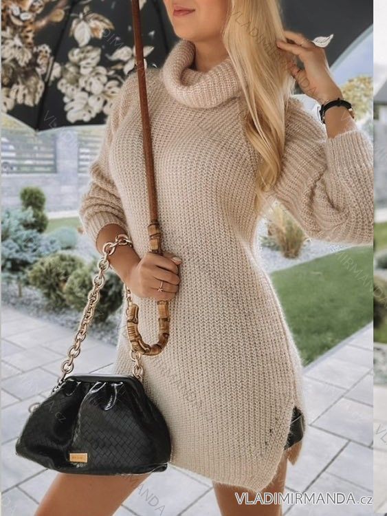 Šaty pletené s rolákem dlouhý rukáv dámské (S/M ONE SIZE) ITALSKÁ MÓDA IMWAD234216