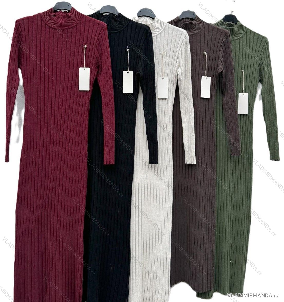 Dlouhé úpletové šaty se stojáčkem a dlouhým rukávem
