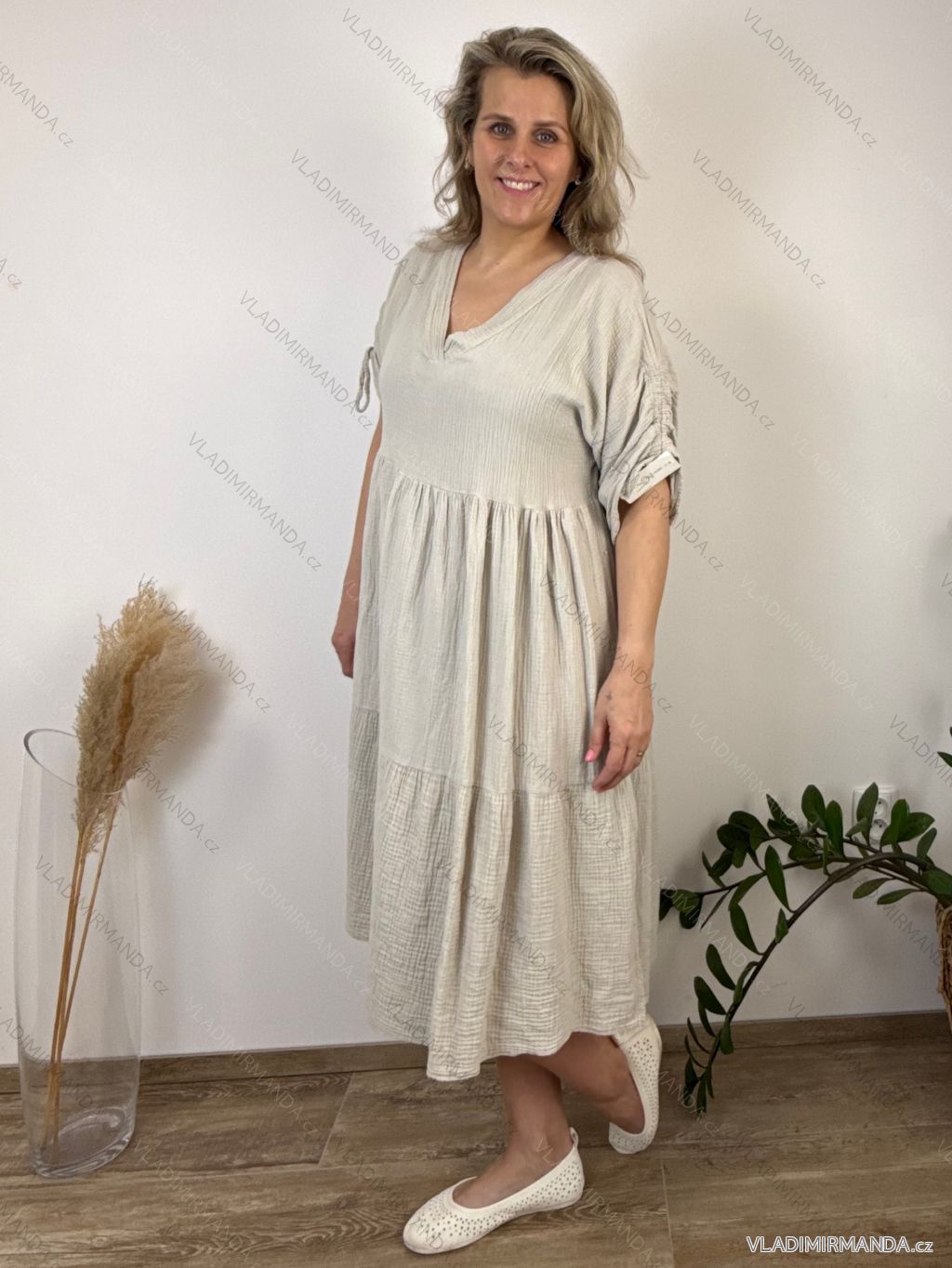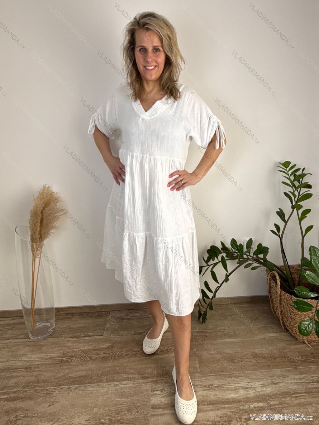 ZBOŽÍ (120887) > Oblečení dámské (81955) > Šaty (30770) > Šaty nadrozměrné XXL+ pro Boubelky (4461) > Šaty nadrozměrné XXL krátký rukáv (2795) > Šaty volnočasové mušelín 3/4 rukáv dámské nadrozměr JULIA (44/46/48 ONE SIZE) ITALSKÁ MÓDA IMD26001235/DUR 44/46/48 bílá