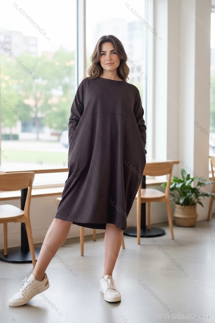 Šaty volnočasové oversize 3/4 dlouhý rukáv dámské nadrozměr (46/48/50 ONE SIZE) ITALSKÁ MÓDA IMD25354