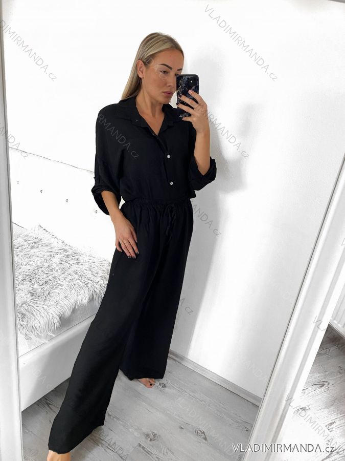 Souprava kalhoty dlouhé a košile dlouhý rukáv dámská nadrozměr (L/XL/2XL ONE SIZE) POLSKÁ MÓDA IMWT23BELLA/DU L/XL béžová