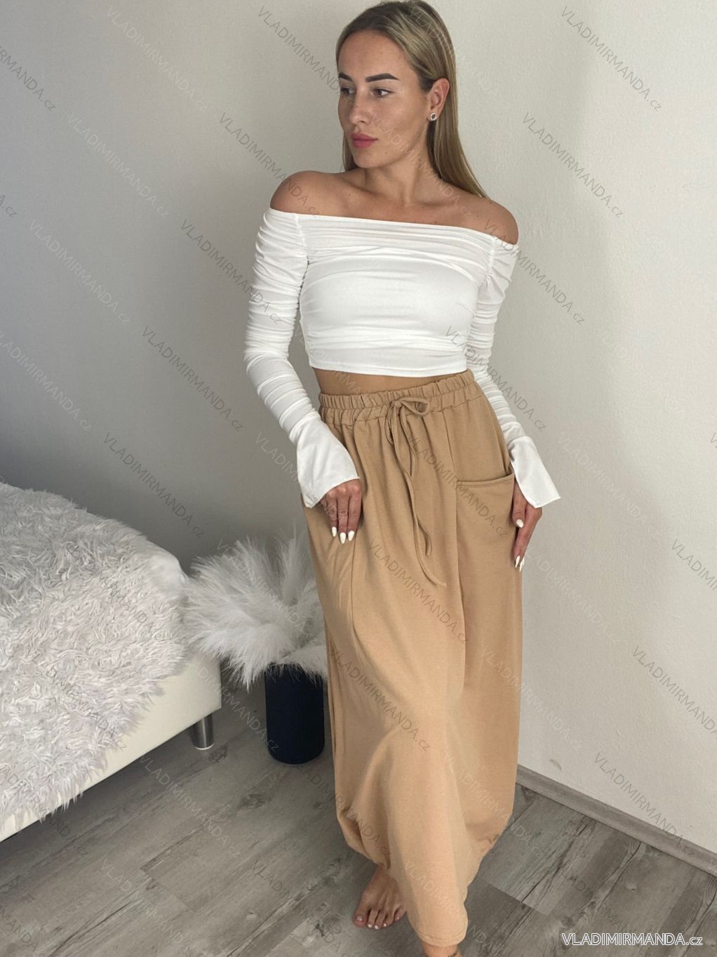 Sukně dlouhá s kapsami dámská PALOMA (S/M/L ONE SIZE) ITALSKÁ MÓDA IMD25054/DUR S/M/L béžová
