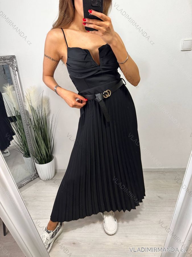 Sukně dlouhá skládaná s páskem dámská (S/M ONE SIZE) ITALSKÁ MÓDA IMM23U6295/DU S/M Černá
