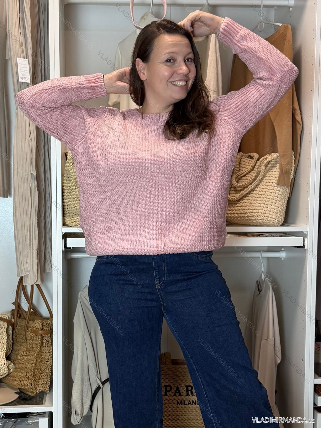 TOVAR (121118) > oblečenie dámske (82018) > Svetre a cardigany (4496) > Sveter teplý hrubý (1303) > Sveter pletený dlhý rukáv dámsky AGNES (M/L-XL/2XL) AMBITIONFLY AMB25N413T/DU XL/2XL růžová světlá