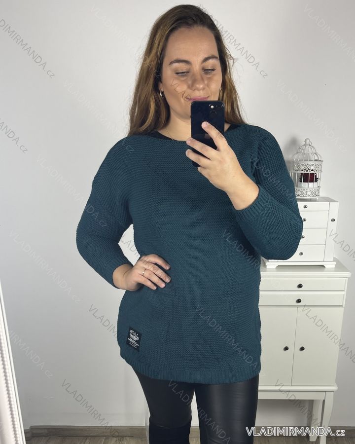 Svetr pletený dlouhý rukáv dámský (2XL/3XLONE SIZE) ITALSKÁ MÓDA IM423MODENA