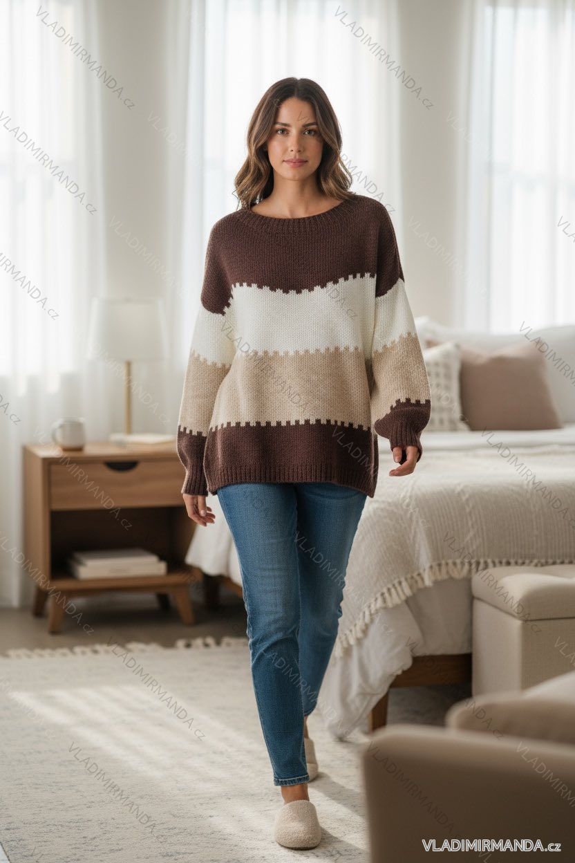 Svetr pletený dlouhý rukáv dámský nadrozměr (46/48/50 ONE SIZE) ITALSKÁ MÓDA IMD25258