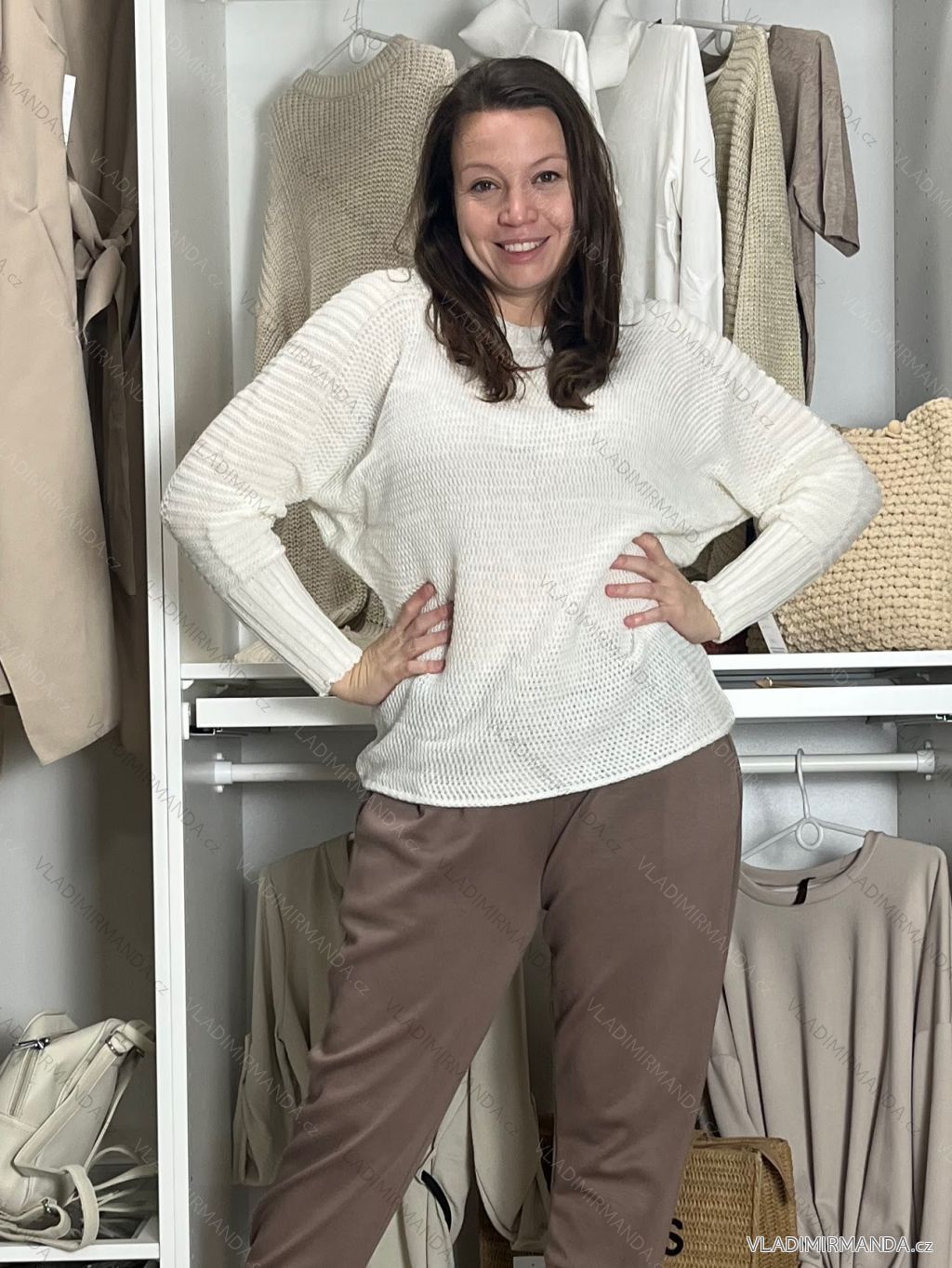 Svetr pletený dlouhý rukáv dámský nadrozměr KARA (42/4/46 ONE SIZE) TURECKÁ MÓDA TM9251111