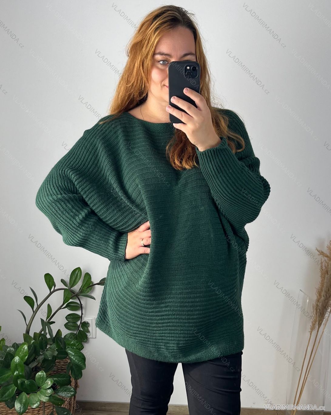 Svetr pletený oversize dlouhý rukáv dámský nadrozměr (58/56 ONE SIZE) ITALSKÁ MÓDA IMD24AUTUM
