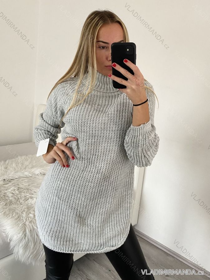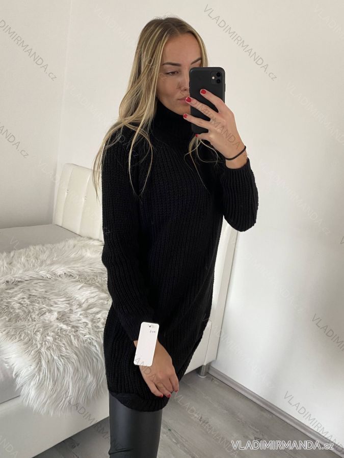 Svetr pletený prodloužený s rolákem dlouhý rukáv dámský (S/M/L ONE SIZE) ITALSKÁ MÓDA IMWB22318 M / L béžová