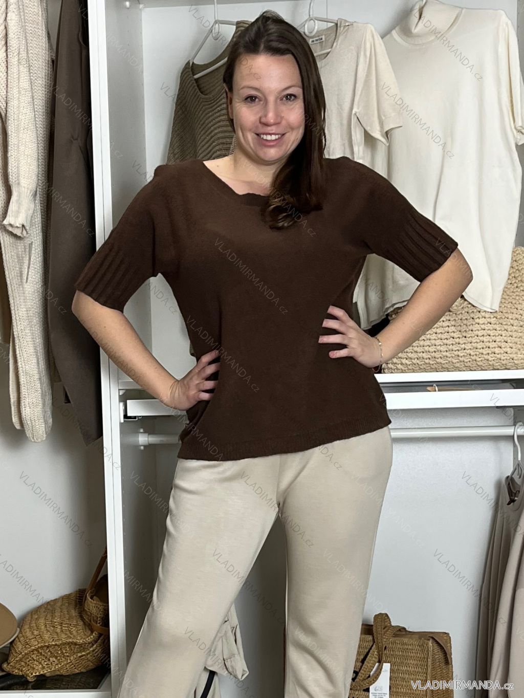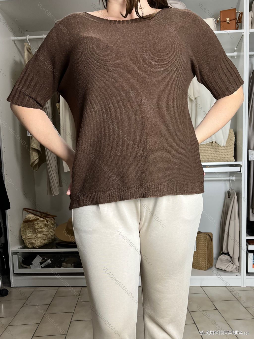 Svetr slabý krátký rukáv dámský (S/M/L ONE SIZE) ITALSKÁ MÓDA IMSM25103/DU hnědá S/M/L