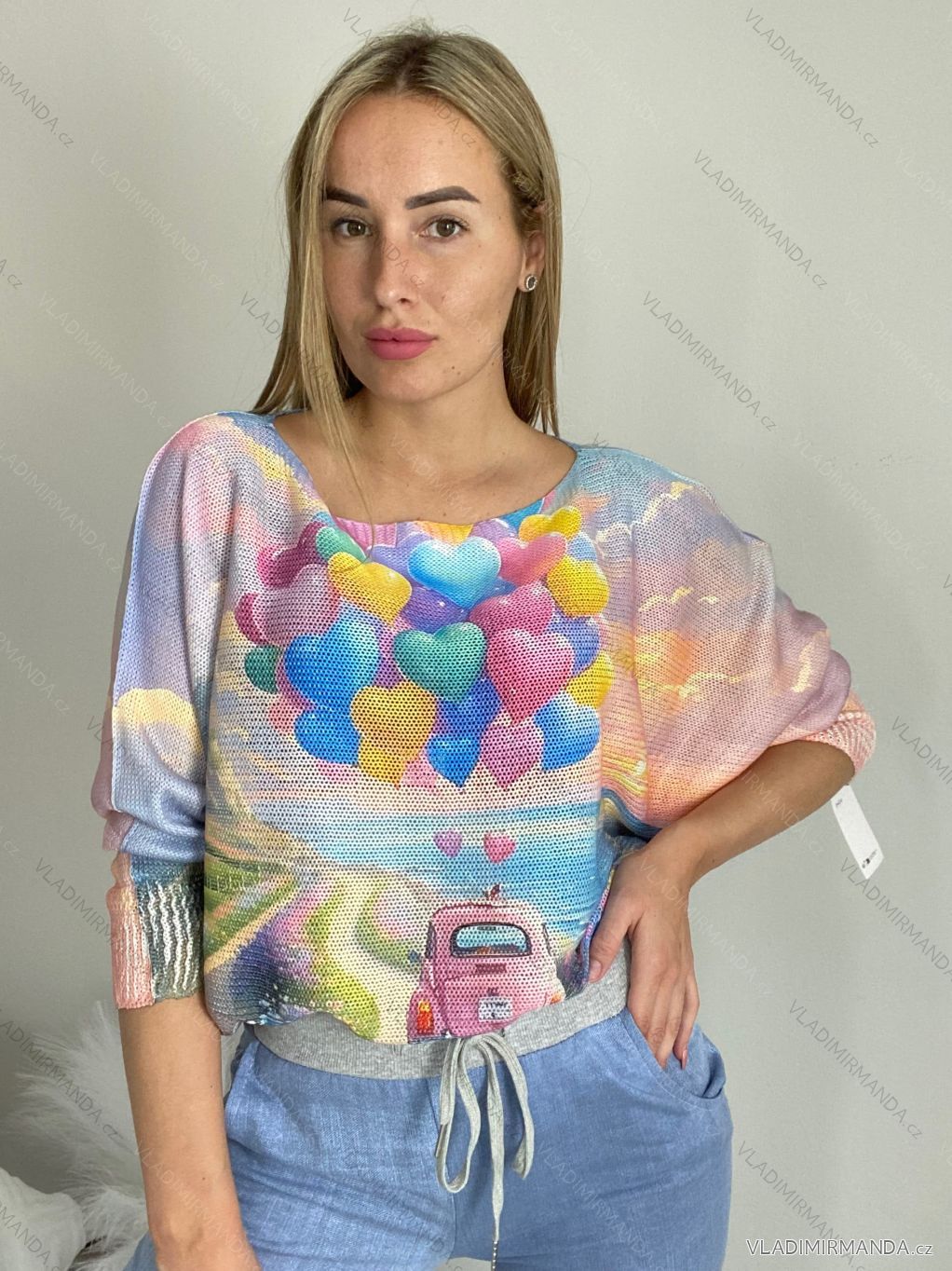 Svetr slabý pletený dlouhý rukáv dámský (S/M/L ONE SIZE) ITALSKÁ MÓDA IMSM25150/DU
