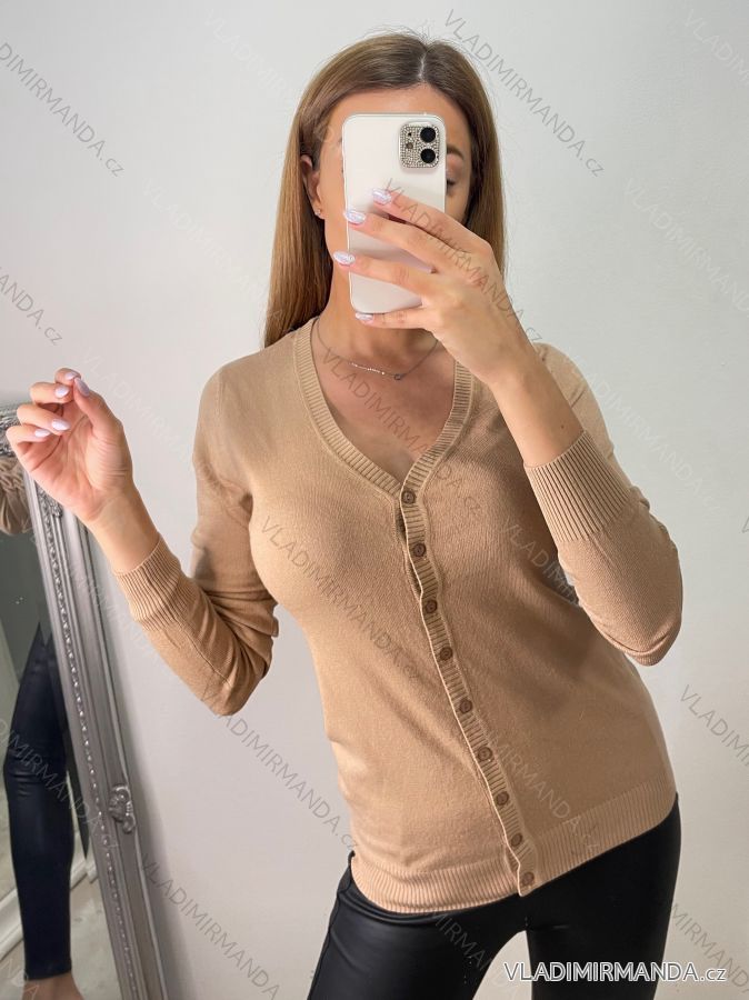 Svetr tenký na knoflíčky dlouhý rukáv dámský (S/M ONE SIZE) ITALSKá MóDA IMM22Fd9072