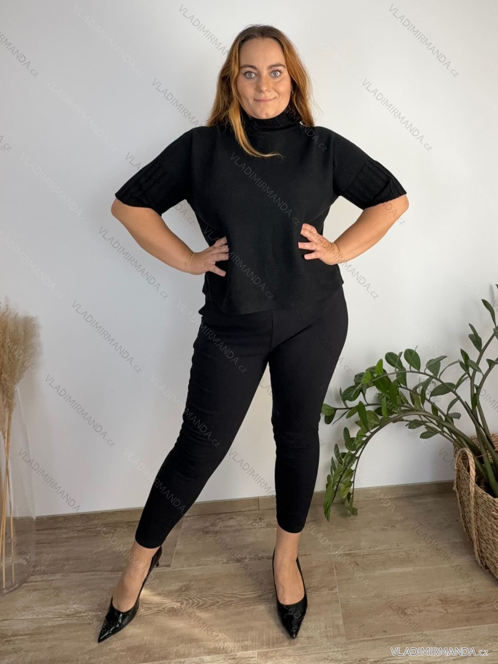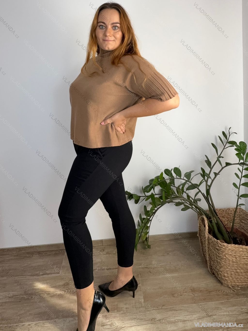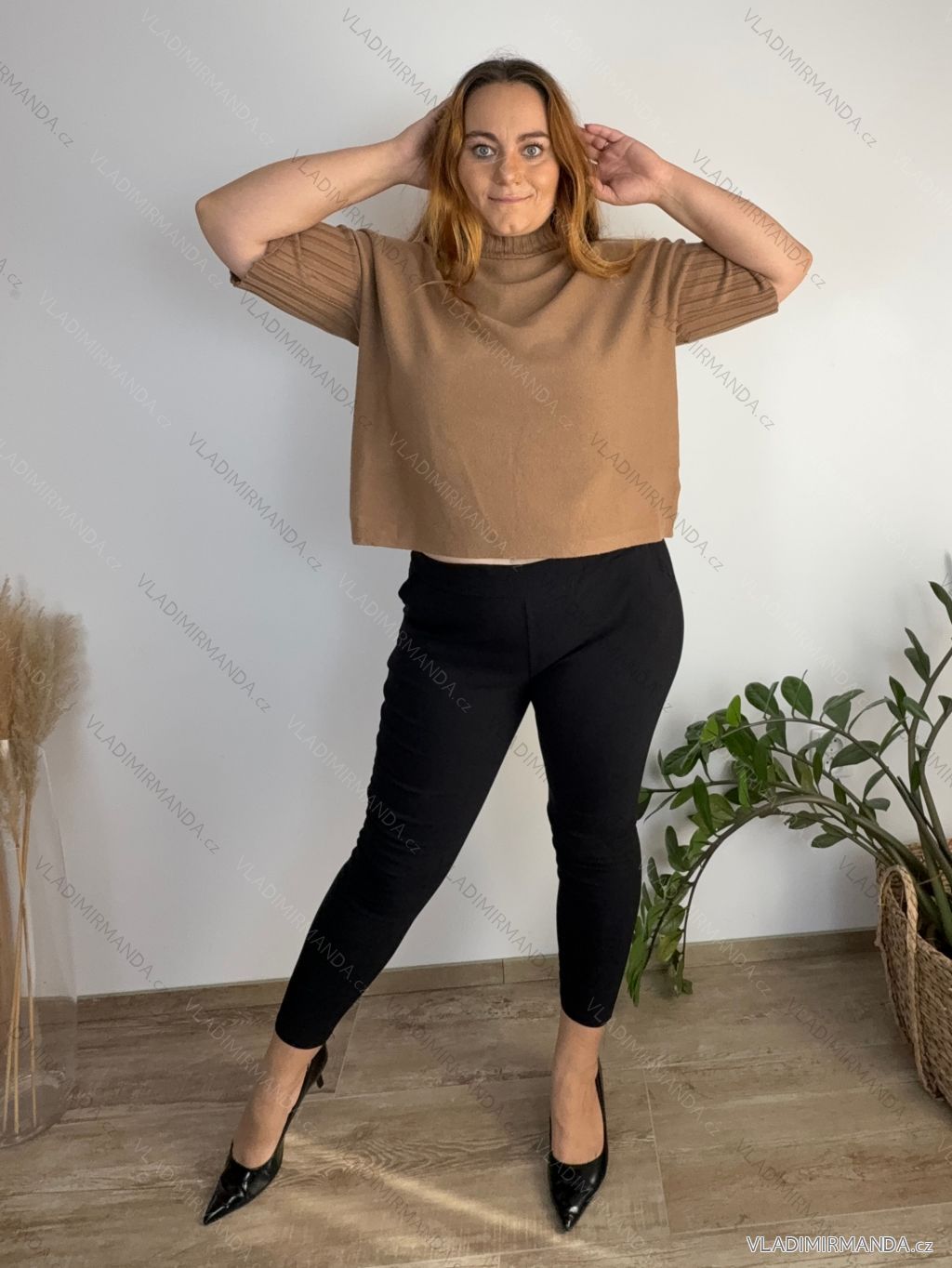 Svetr úpletový se stojáčkem krátký rukáv dámský nadrozměr (52/54/56 ONE SIZE) ITALSKÁ MÓDA IMWGBL25AT63535-2/DU 52/54/56 hnědá