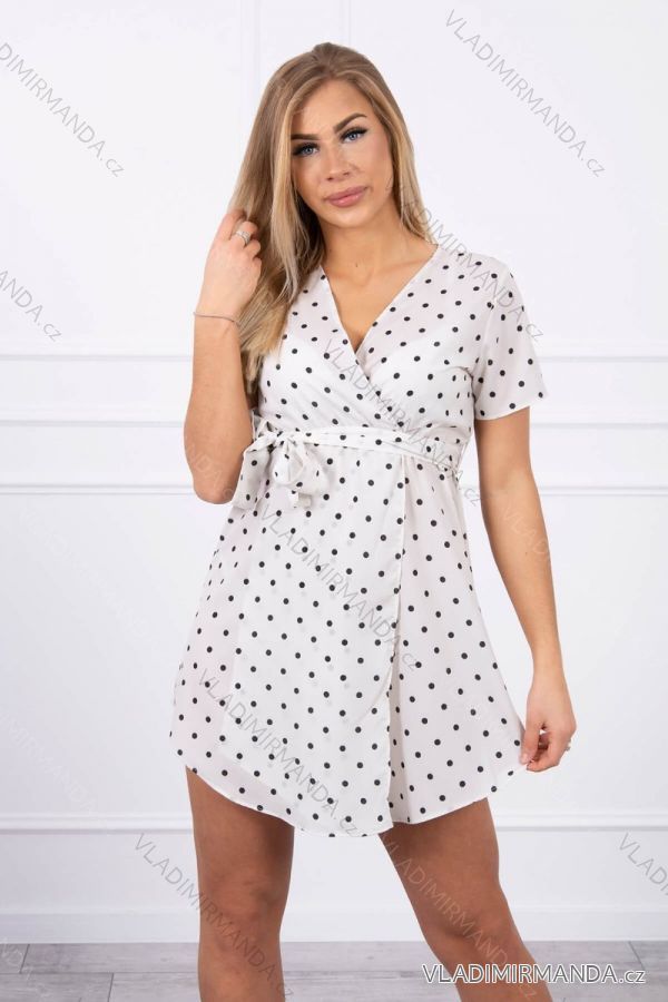 Představujeme vám módní šaty. Šaty mají vzor polka dot. Šaty svázané v pase. Perfektní položka pro každodenní použití. Šaty jsou vyrobeny z vysoce kvalitního materiálu. Velikost je univerzální a bude vhodná pro dámy na sobě velikosti S, M nebo L.