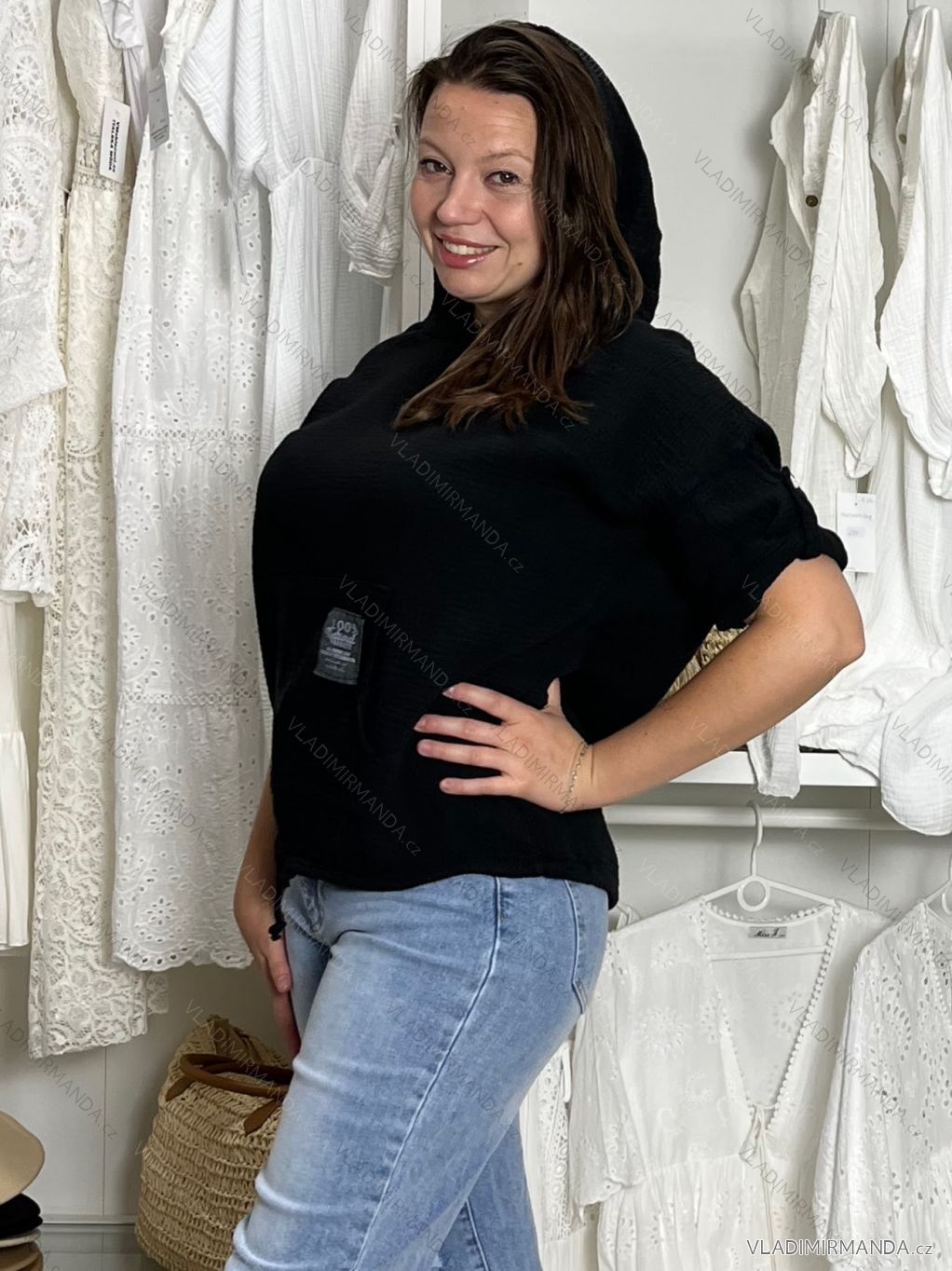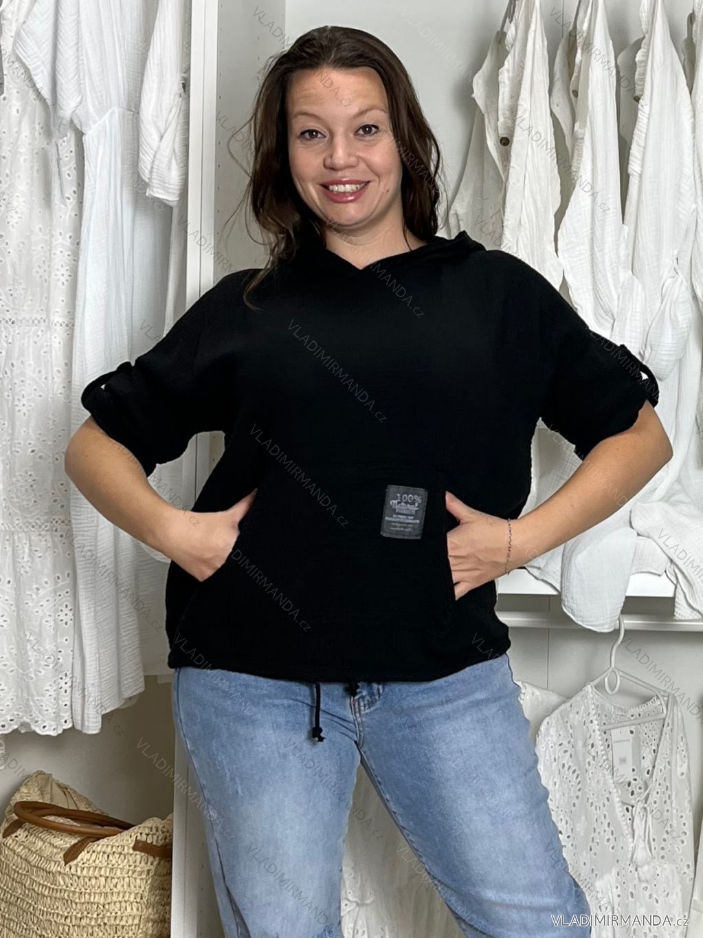 Tričko s kapucí mušelín 3/4 dlouhý rukáv dámské nadrozměr GINI (46/48/50 ONE SIZE) ITALSKÁ MÓDA IMSM25069