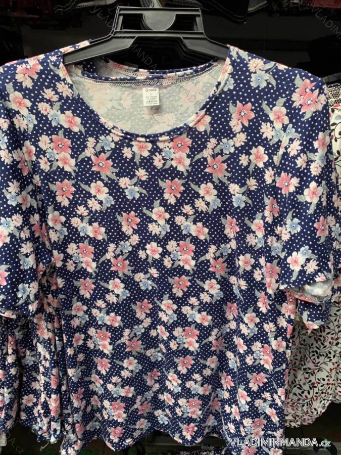 Tričko tunika krátký rukáv květ dámská nadrozměrná (L-4XL) GOSIA POLSKÁ MÓDA PM119182