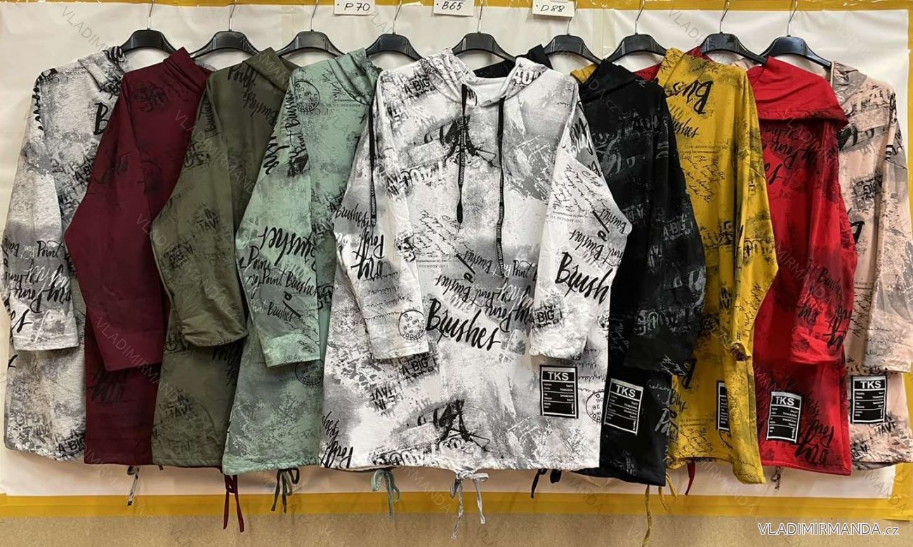 Tunika dlhý rukáv s kapucňou dámska nadrozmerná (2XL / 3XL ONE SIZE) TALIANSKÁ MÓDA IM4212231