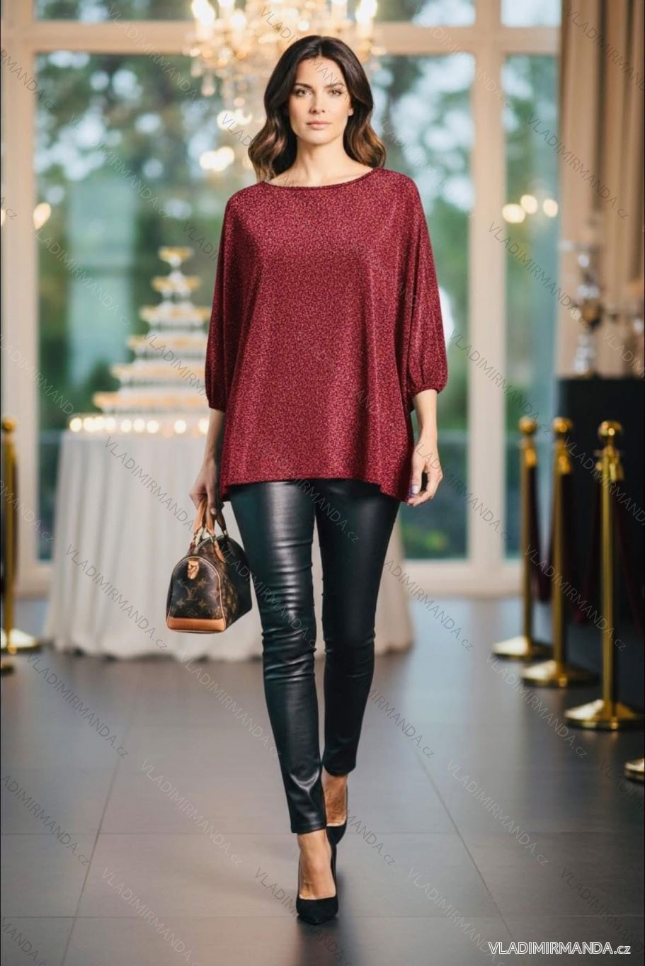 Tunika elegantní třpytivá 3/4 dlouhý rukáv dámská nadrozměr (54/56/58 ONE SIZE) ITALSKÁ MÓDA IMD25324