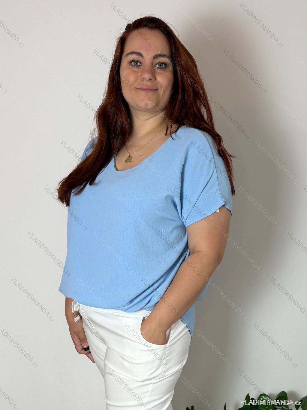 ZBOŽÍ (120706) > Oblečení dámské (82078) > Topy, trička, tuniky a tílka (13142) > Tunika/halenka krátký rukáv dámská nadrozměr (2XL/3XL/4XL ONE SIZE) ITALSKÁ MÓDA IMD231458/DUR 2XL/3XL modrá