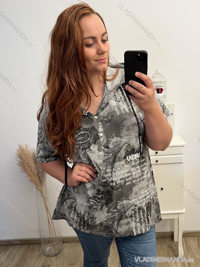 Tunika krátky rukáv s kapucí dámska nadrozmer (2XL /3XL/4XLONE SIZE) TALIANSKA MóDA IM423NOTA