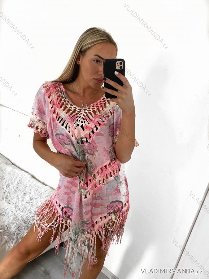 Tunika přehoz oversize plážový přes plavky krátký rukáv dámská (S/M/L ONE SIZE) ITALSKÁ MÓDA IMM23SP0020-1/DU