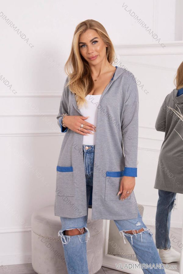 Two-color cape with hood, cornflower + gray