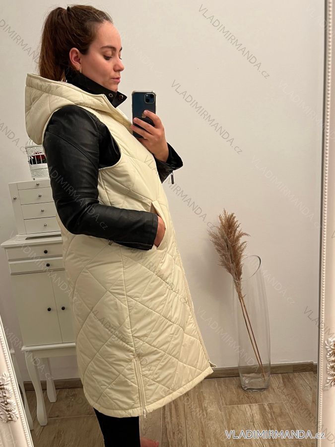 Vesta dlhá s kapucňou bez rukávov dámska (L/XL ONE SIZE) TALIANSKA MÓDA IMD23711/DU béžová L/XL