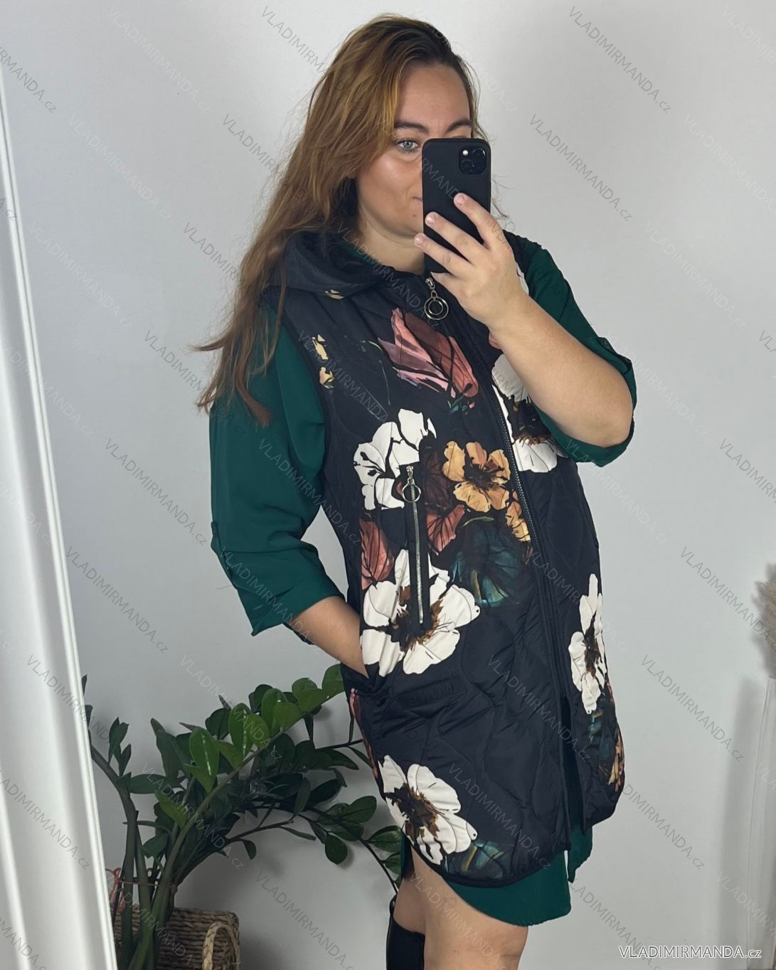 Vesta na zip s kapucí dámská nadrozměr (44/46/48 ONE SIZE ) ITALSKá MóDA IMSM24ROSE/DR 44/46 Černá