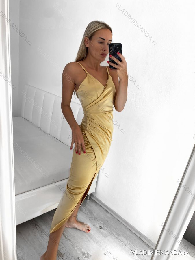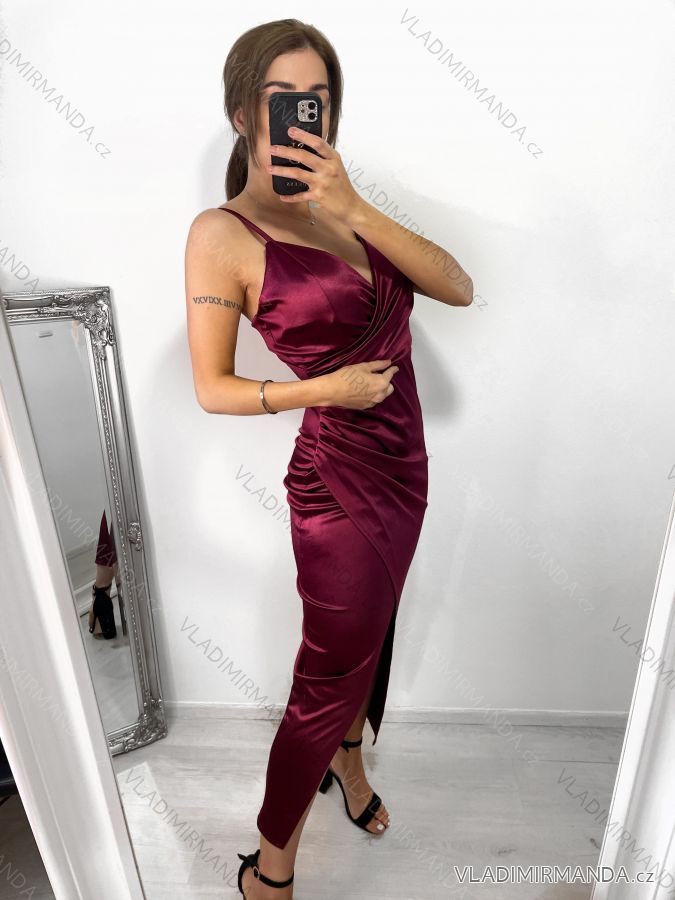 Elegant satin party dress with straps for women, back zipper closure, chest with padding,