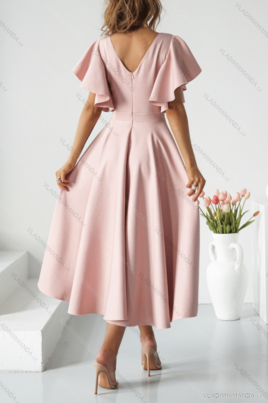 Women's Long Elegant Dress with Wide Straps (SL) FRENCH FASHION FMPEL23VELVET rose old rose 48