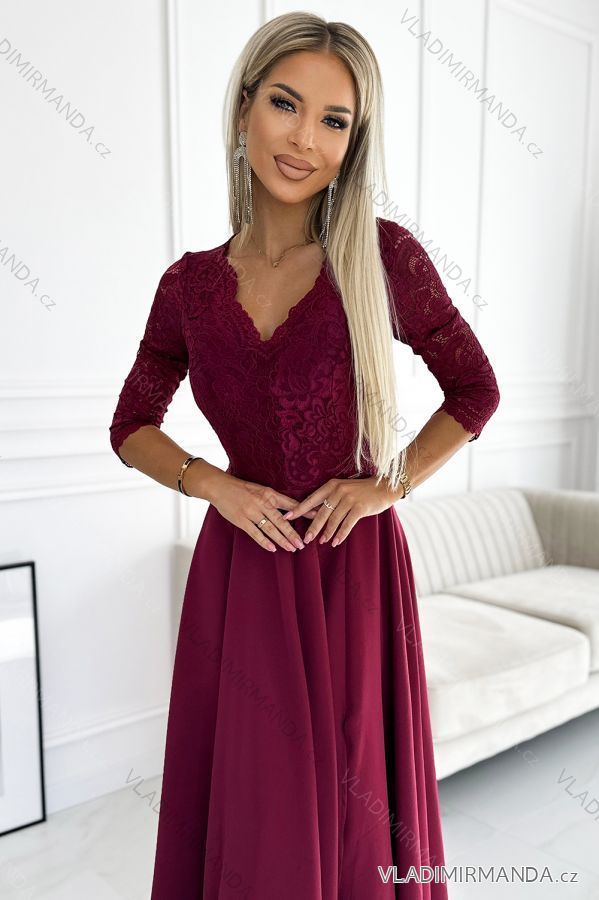 Women's Long Elegant Satin Dress (XL) ITALIAN FASHION NUMECO24411/DU XXL wine