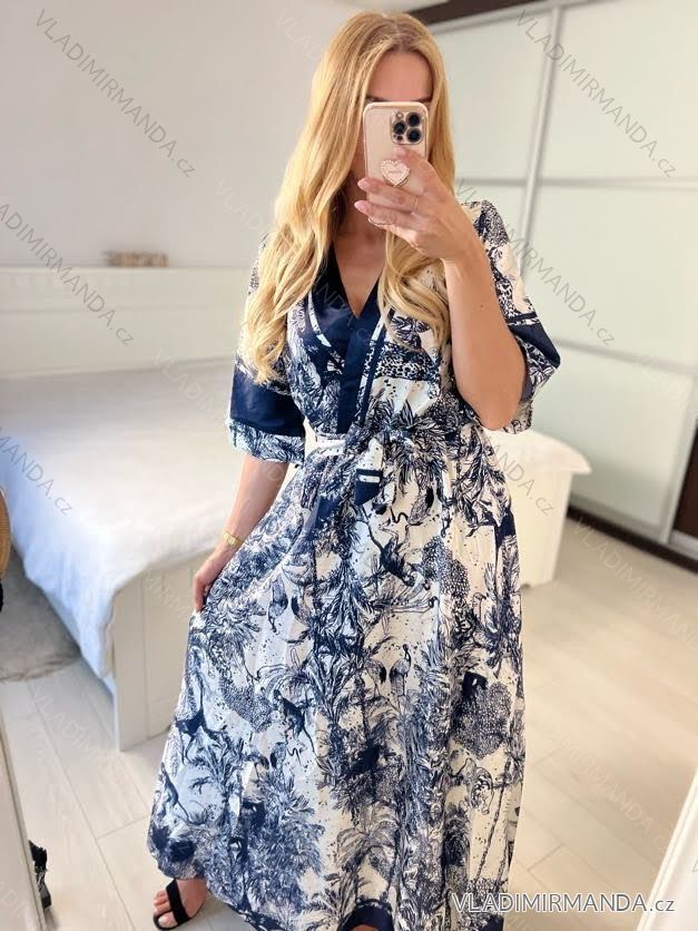 GOODS (119551) > Women's clothing (80969) > dress (30381) > Šaty dlouhé elegantní krátký rukáv dámské (S/M ONE SIZE) ITALSKÁ MODA IMM247277 - blue - S / M