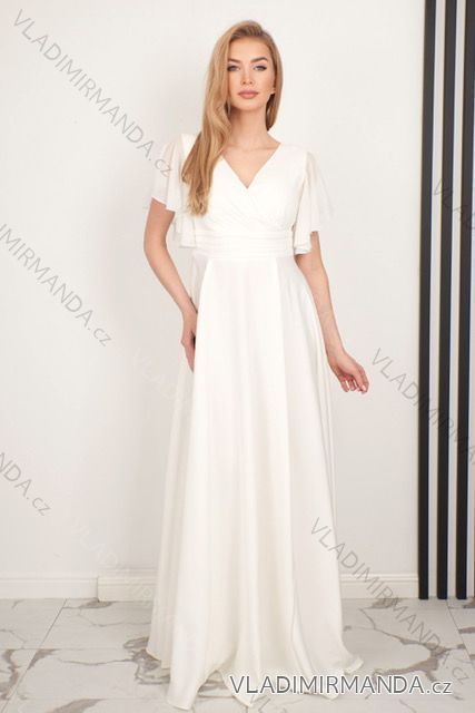 Women's Long Formal Short Sleeve Dress (36-54) POLISH FASHION PMLMR23LAURA 48 white