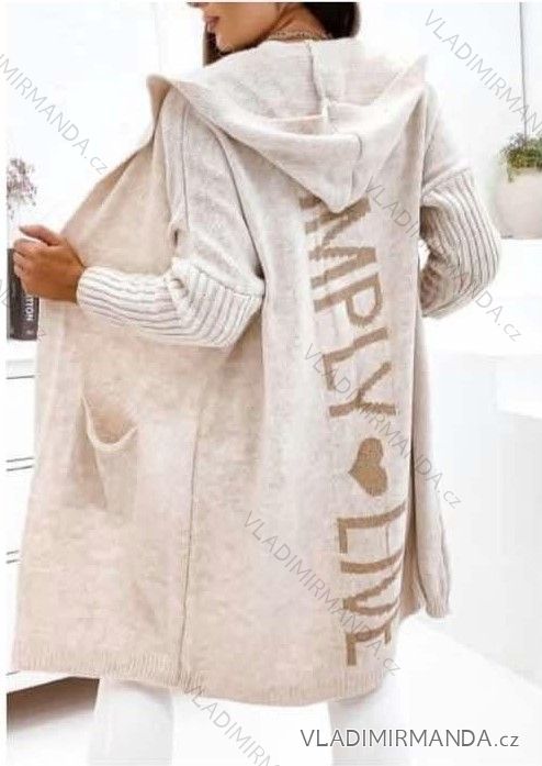 Women's Long Sleeve Knitted Hooded Cardigan (S/M ONE SIZE) ITALIAN FASHION IMWD232745