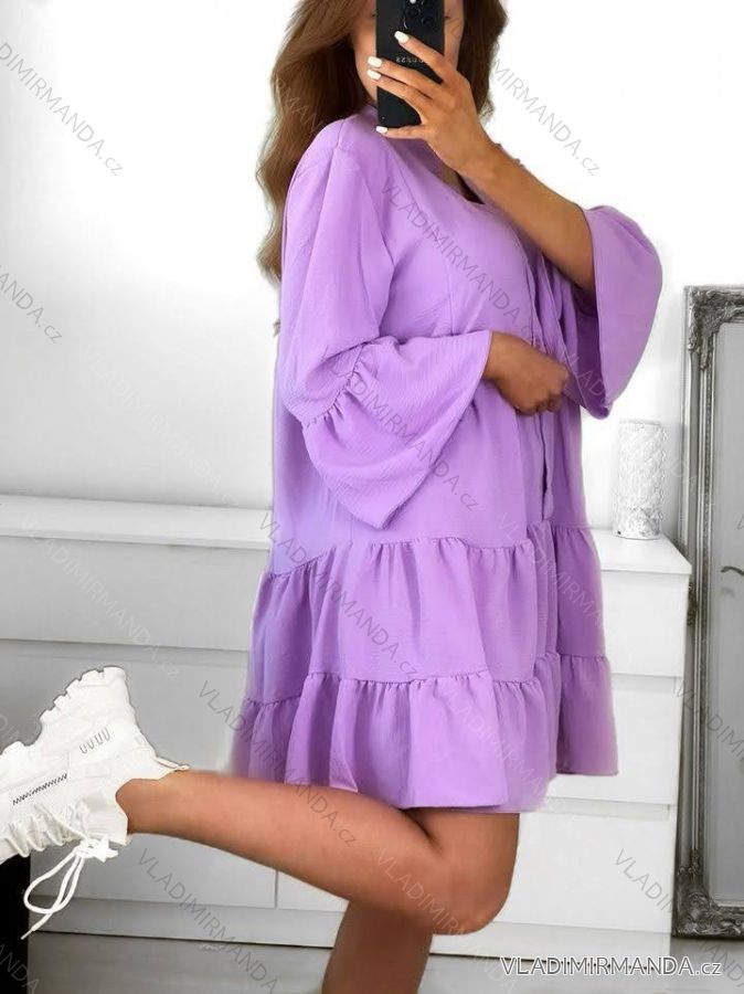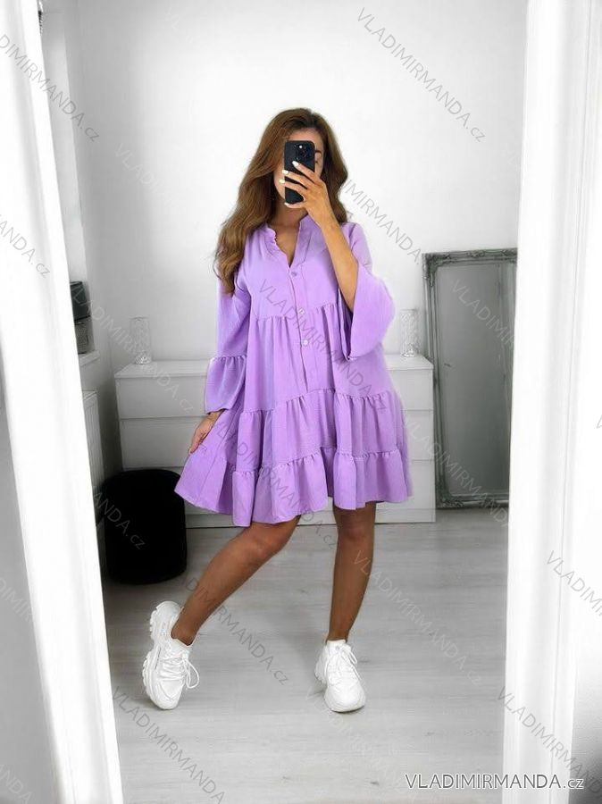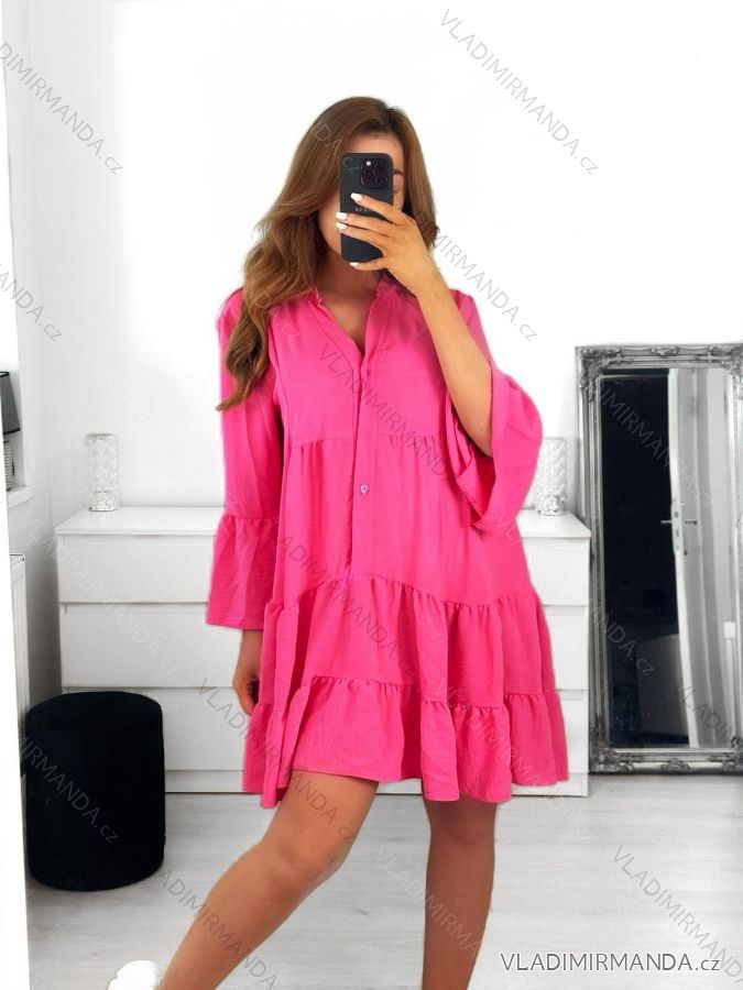 Women's Oversize 3/4 Long Sleeve Dress (S/M ONE SIZE) ITALIAN FASHION IMWGB231731/DU S/M Beige